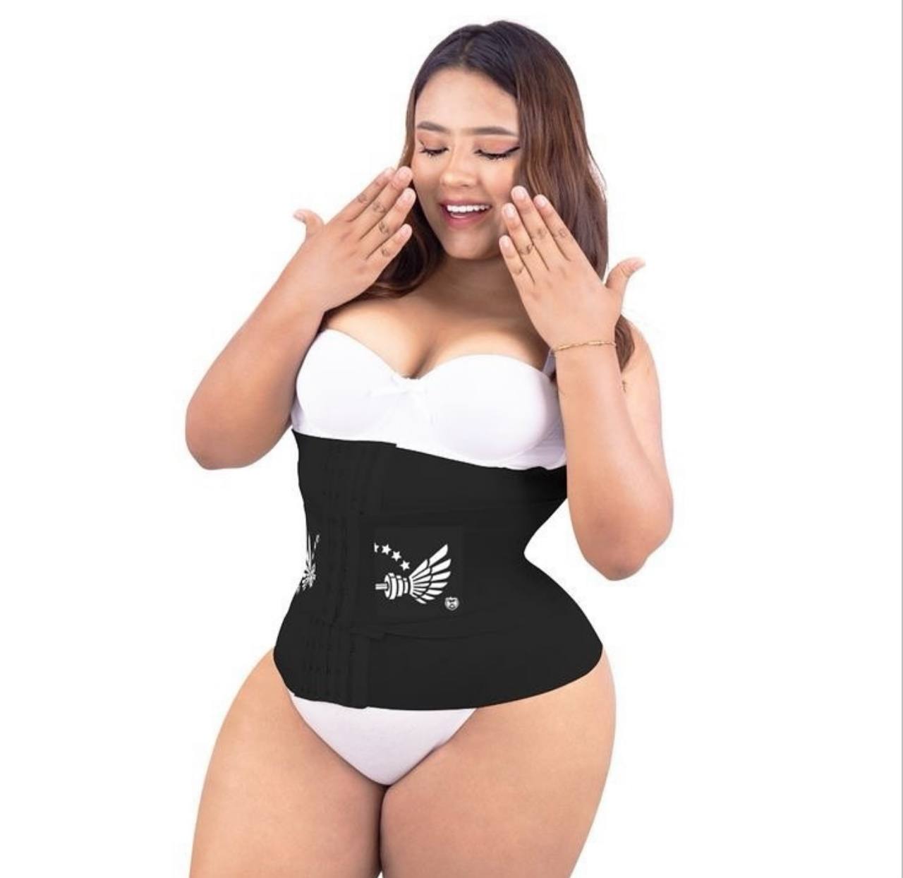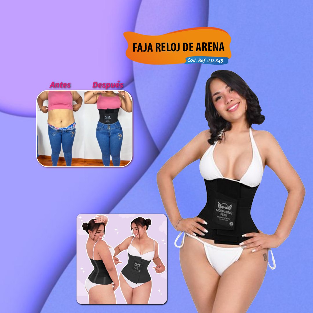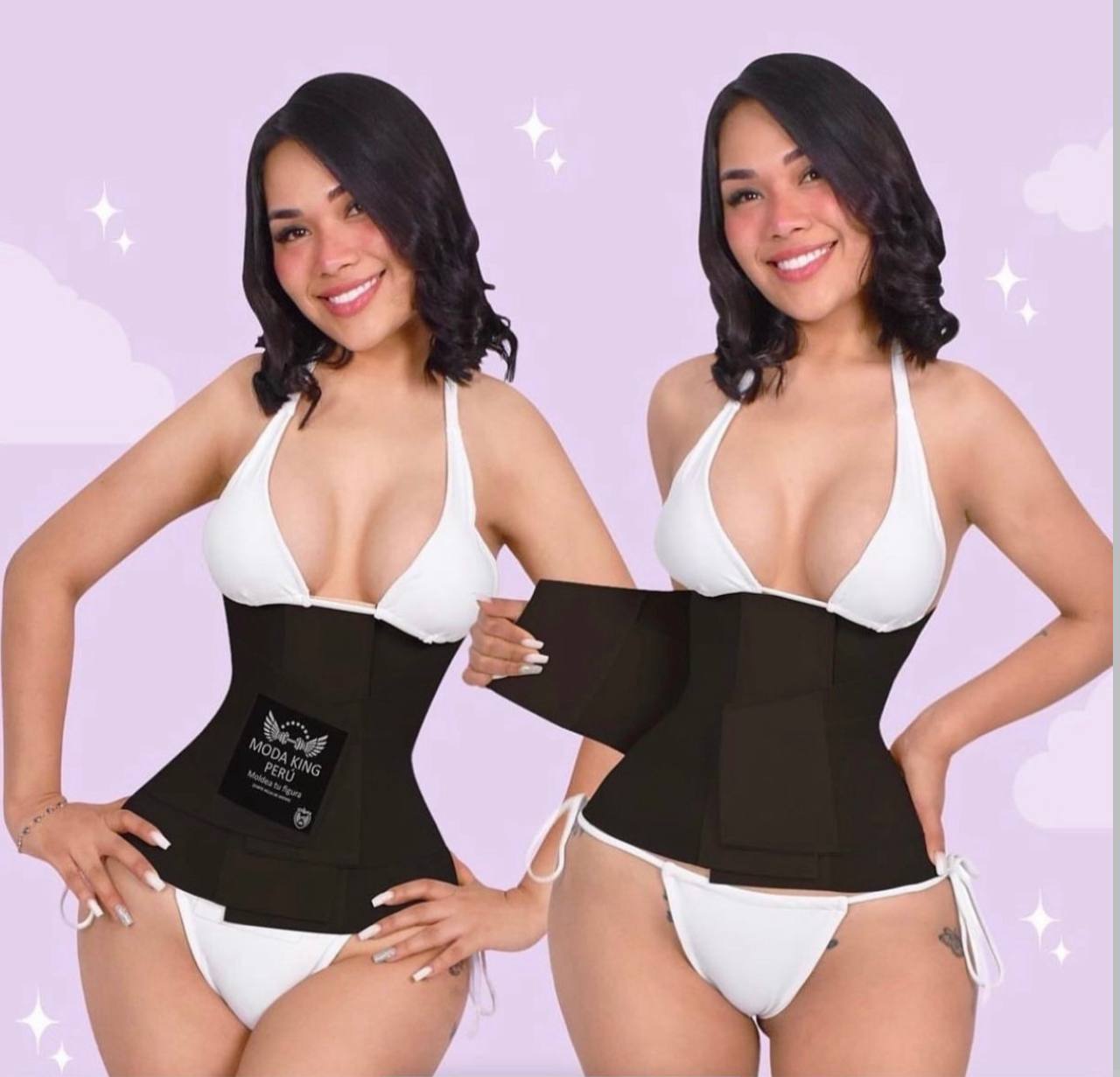 - Tiene alta compresión en la zona del abdomen, puede ser una cinturilla o una faja reloj de arena completa que tiene un diseño especial en la zona del glúteo, un short o puedes combinar el uso de un short con una cinturilla al mismo tiempo